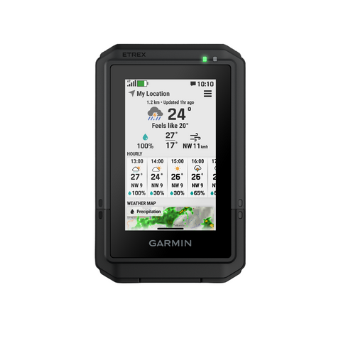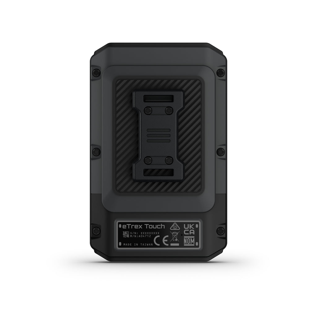 The eTrex Touch handheld is purpose-built with an IP67 water rating and impact-resistant (MIL-STD-810) design to withstand weather and rugged conditions.