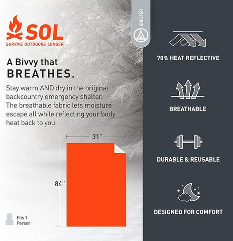 - A bivvy that BREATHES. Stay warm AND dry in the original backcountry emergency shelter that stays dry while you heat up.